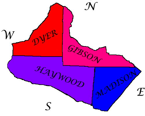 Alamo is the county seat. The county is situated between the south and middle forks of Forked Deer River. The south fork of Forked Deer River forms the southern boundary line and the middle fork of Forked Deer River forms the northern boundary line. Pond Creek rises about 300 yards north of Alamo, flows northwest and empties into the main Forked Deer River, at about twenty-five miles from that town. Cypress Creek rises in Madison County, flows northwest, and empties into Forked Deer River, about ten miles north of Alamo. First SettlersThe first settlement in this area was about 1824 near the Haywood County line, south of the present town of Bell's Depot. Among the first settlers was Francis M. WOOD, Charles WORTHAM, William JOHNSON, Timothy PARKER, Wyatt F. TWEEDY, Wiley DODD, William DYER, Thomas TWEATT, and William KAVANAUGH. About 1825, Thomas FERGUSON came to Crockett in charge of a party of laborers to open up a farm and put in a crop for Gen. Blackman COLEMAN, who had purchased a tract of land in the area now known as Lanefield. A year or so later, Ferguson moved from the Lanefield neighborhood and settled what became known as Ferguson's Landing on the Forked Deer River. A short while later, James WYLIE and Abram EASON came from North Carolina and settled near him. A few miles farther down the river, a settlement was formed by Cornelius and Albert BUCK, Edward WILLIAMS, and Capt. MOODY settled. About the same time David NUNN, Parson KOONCE, William ANTEWINE, and Henry POWELL settled. Other pioneers of the county was John F. and C. H. FELTS, Stephen BOOTH, Spencer PAYNE, John BURNETT, Thomas YOUNG, Solomon HUNTER, David WILSON, Zachariah HOBSON, James HENDRICKS, Richard COOP, Miles JENNINGS, ____ DINWIDDIE, Solomon SHAW, Samuel WILKINS, Newton MAYFIELD, Thomas TUCKER, Wilson WYNN, James CARTER, B. G. and H. B. AVERY, Moses COX, John TATUM, Levin JAMES, B. F. COLLINGSWORTH, Robert EDMUNDSON, James McCLARY, Sugars McLEMORE, J. B. BOYKIN, Henry PEARSON, H. B. WILSON, R. W. SIMS, G. H. MASON, E. B. MASON, Anthony SWIFT, John McFARLAND, Solomon RICE, Joseph CLAY, John CLAY, John BOWEN, Isaac H. Mason, Hugh Raines, John HILL and Bently EPPERSON. The first settlements were in the nature of small clearings. One pioneer, more bold than the others, would push forward into the woods, make a clearing and build a cabin, and in a short time the others would follow and settle near him. How Crockett Came To Be....The inconvenience of reaching the county seat of the counties that created Crockett induced the people that lived in the fractions of Haywood, Gibson, Madison and Dyer counties to take steps to form a new county as early as 1832-33. A petition was circulated and recieved numerous signatures before being forwarded to the constitutional convention of 1834, praying that body would grant them the authority to form a county out of the above fractions. The petition was not presented and nothing came of the efforts. The request continued and resulted in the passage, on December 20, 1845 of an act by the General Assembly, entitled as follows: "An act entitled to establish the county of Crockett in honor of and to perpetuate the memory of David Crockett, one of Tennessee's distinguished sons. The act provided that the county should be formed out of the counties of Haywood, Gibson, Madison, and Dyer, and appointed Isaac M. JOHNSON, David WHITAKER, Joel NUN, Willis L. RIVERS, Kinchen HATHAWAY, Isaac H. MASON, Alfred T. FIELDER and Noah PERRY as commissioners to run the boundary lines, organize the county and select a location for a county seat. The act also designated the house of Isaac M. JOHNSON, near where the county seat now stands, as the place of holding the various courts, until the selection of a county seat and the erection of a court house. In the spring of 1846, the above commissioners marked off the boundary lines of the county and selected the present county site, where a town was laid out and named Cageville, in honor of Lycurgus Cage, one of the first merchants of that vicinity. The magistrates of the new county met at the disignated place in June, 1846,, and organized the county. Officers were elected as follows: clerk, Isaac M. JOHNSON; sheriff, John R. JELKS; register,N. W. MAYFIELD; trustee, Joel NUN. In October of 1846 the circuit court met in session at Mr. Johnson's house. The court was presided over by Judge J. C. REED, and John MANNING was appointed clerk. The new county had its enemies among the citizens of the old counties, who sought to throw every obstacle in the way of and prevent, if possible its organization. The question of the new county's constitutionality was raised, and being present to Judge REED, that gentlemen decided adversely to the county, adjourned his court and returned to his home. Each fraction returned to their original county until 1845. The New ActBut before lon the people began to renew their efforts of a similar law as the one in 1845 granting a new county. The new act was passed by the General Assembly November 23, 1871 and authorized the formation of Crockett County out of fractions of the counties. The act appointed William N. BEASLEY and John F. SINCLAIR of Dyer County; J. Frank ROBERTSON and David H. JAMES of Gibson County; Thomas J. HICKS and John C. PEARSON of Madison County; Asa DEAN and Francis J. WOOD of Haywood County, as commissioners to survey and mark off the boundary lines of the new county, locate the county seat and hold an election for county and district offices. The act further provided for the name of the county seat as Alamo for the spot where David CROCKETT fell. The commissioners met at Cageville on December 19, 1871 and were sworn in by Isaac M. JOHNSON, acting justice of the peace of Haywood County. They organized as a commission and elected John F. SINCLAIR as president and F. J. WOOD as secretary. A motion was ordered to take the census of the qualified voters of their respective fractions. On January 25, 1872 they met aga