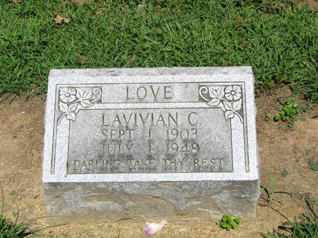 CROCKETT COUNTY SENTINEL VOLUME 77 NUMBER 3 THURSDAY JULY 7, 1949 BELLS, TENNESSEE DEATH--Mrs. Lavuran LOVE, wife of A. W. LOVE, died at her residence in Dyersburg Friday. She was 45 years old, had been in ill health for 15 years, confined to her bed for the past two years. She had lived in Dyersburg since 1925, when the family moved here from Friendship. Besides her husband, she leaves two daughters, Miss Catherine LOVE and Mrs. Bob GRIFFIN, of Dyersburg; her mother, Mrs. Kate TOWNSEND, of Dyersburg; five brothers, William TOWNSEND, of Memphis, Mark TOWNSEND, of RoEllen, Dawson TOWNSEND, of Dyersburg, (only three brothers named); four sisters, Mrs. Lola BASS of Friendship, Mrs. Mark COBURN, of Tigrett, Mrs. Louis HUNGERFORD, of Memphis and Mrs. Gene REED, of Dyersburg and two grandchildren. Services in First Baptist Church, burial in Fairview Cemetery. The obit spells her first name Lavuran, but her tombstone spells it Lavivian [view tombstone]. Lavivian Townsend married Alva W. Love, 5 Jun 1920, in Dyer Co., TN |