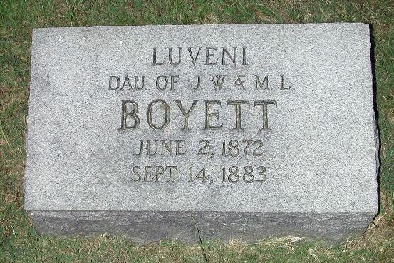 36 Luveni Boyett, Daughter of J. W. & M. L. June 2, 1872 Sep. 14, 1883