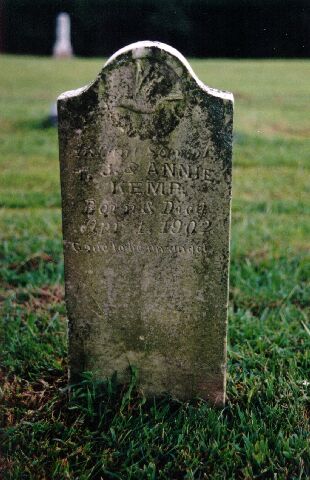 4 Annie Kemp, Wife of T. J. May 11, 1876 Apr. 5, 1902