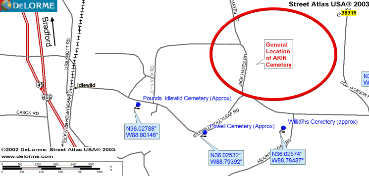 the right is where the Akin Cemetery was.