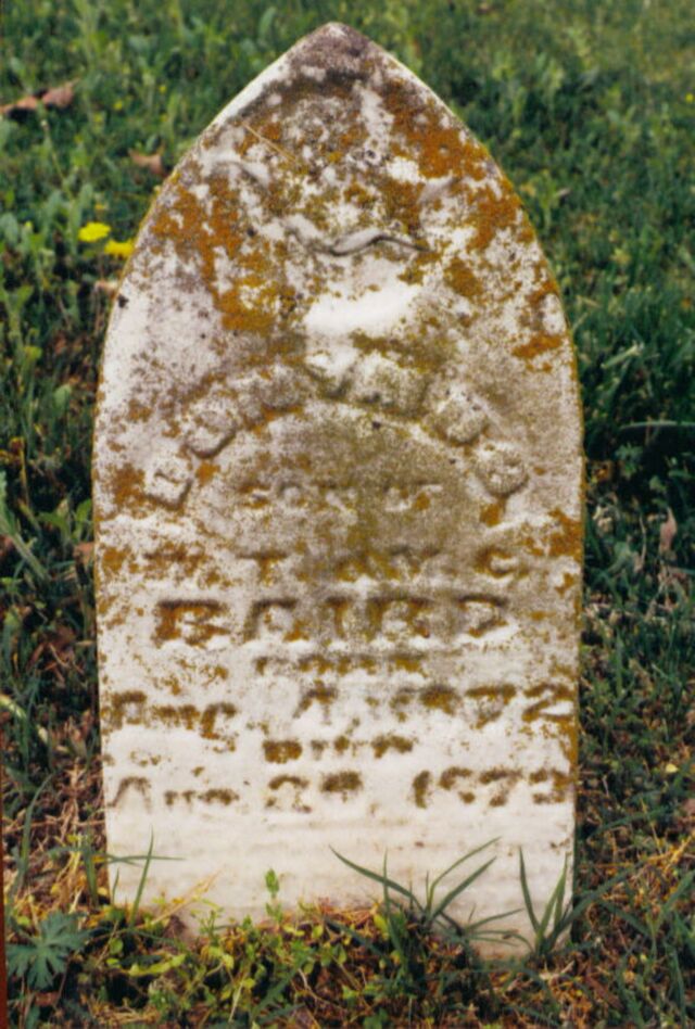 BAIRD, Donymoo or Donymud???? b. Aug. 4, 1872, d. Aug. 20, 1872 (Name very hard to read) Son of W.T. & M.G.