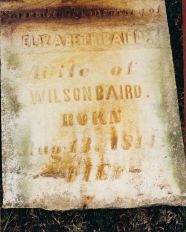 BAIRD, Elizabeth b. Aug. 13, 1814, d. May 7, 1858 Wife of