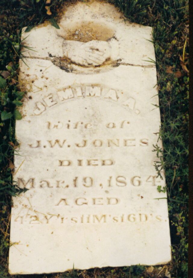 JONES, Jamima A. b. _____, d. Mar. 19, 1864 Wife of J.W. Age 42 ys. 11 ms. 16 d's