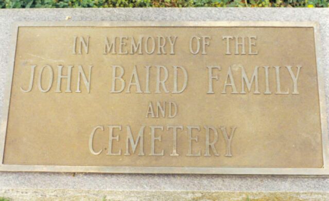 In front of the stones, there is a fairly new stone reading: "In Memory of the John Baird Family and Cemetery"