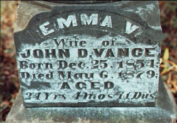 Emma V. Wife of John D. Vance Born Dec. 25, 1854 Died May 6, 1879
