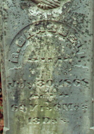 R. Brassell Died July 30, 1868 Aged 69 Y’rs 6 Mo’s 13 Da’s