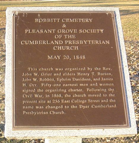 Pleasant Grove Society of the Cumberland Presbyterian Church - May 20,
