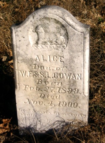 Cowan Alice Feb. 27, 1899 Nov. 4, 1900 dau. of WF & SL