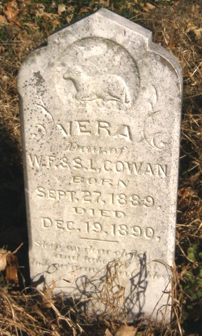 Cowan Vera Sep. 27, 1887 Dec. 19, 1890 dau. of WF & SL Cowan