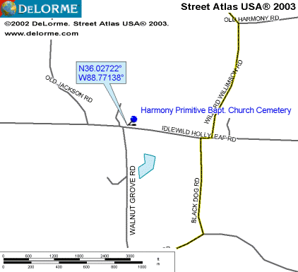 beside Harmony Primitive Baptist Church which is about 2 1/2 miles east