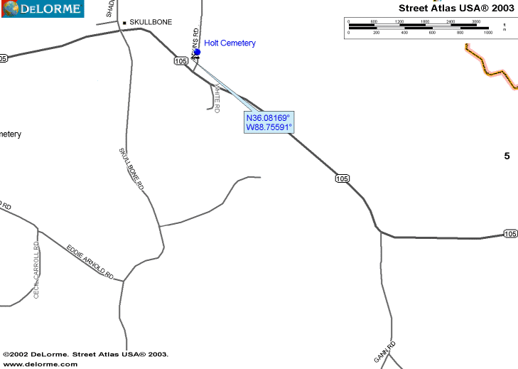 This small family plot is on Hwy. 105 east of Skullbone, TN. Turn Left on Atkins Rd., it is about fifty yards up the road on the left. It is in a small grove of cedar trees and part of a yard next to the road.