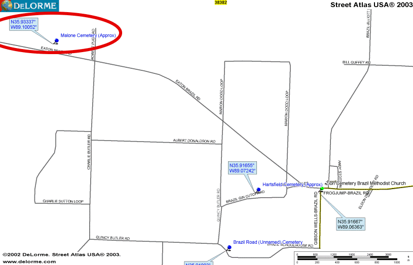 Cat Edwards wrote on 02/05/2007: At one time Old Beulah Primitive Baptist Church was there and the cemetery with it. I was told several years ago by a farmer nearby that Cowboy Hamilton buried many of the stones that were in that cemetery.