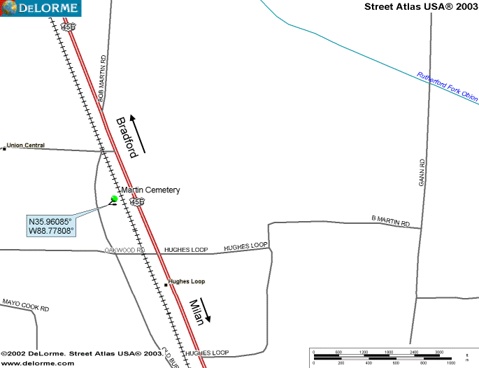 Milan (starting at the railroad tracks) on Hwy 45, go north toward Bradford 2.5 miles and