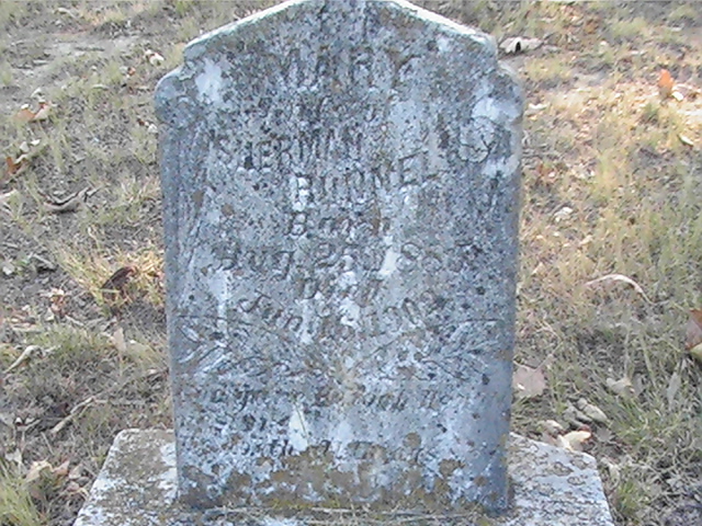 fence row at the north end of the cemetery is a small uninscribed headstone with flowers.