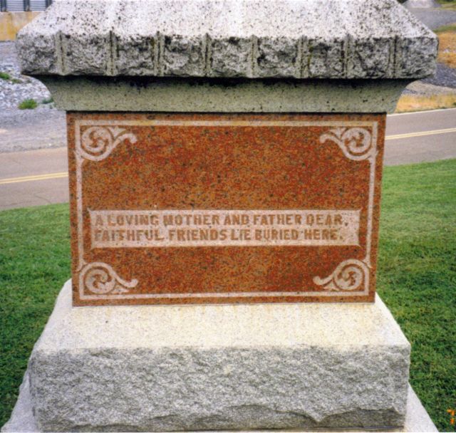 (Elizabeth) Lizzie Marsh His wife b. 18 November 1845 d. 4 May 1921 daughter of Thomas Laird and Prudence Paralee (Starkey) Marsh