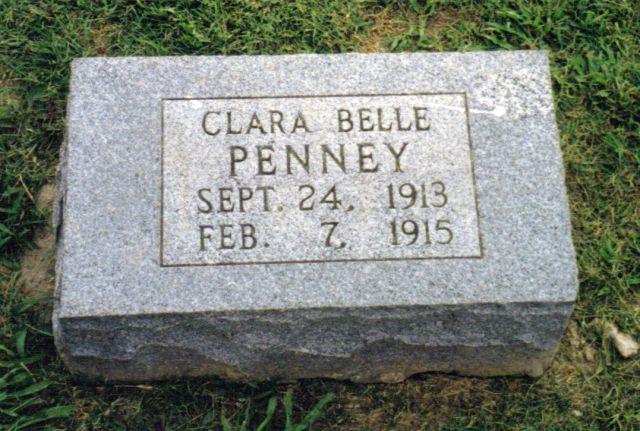 PENNEY, Clara Belle b. 24 September 1913 d. 7 February 1915 daughter of Oscar Lee and Effie Hackney (Marsh) Penney