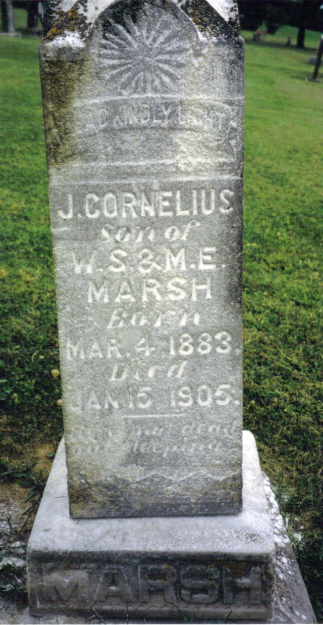 MARSH, J. Cornelius b. 4 Marsh 1883 d. 15 January 1905 son of William S. and Mollie E. Marsh “He is not dead, only sleeping”