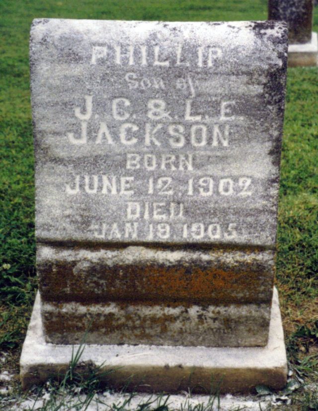 JACKSON, Phillip b. 12 June 1902 d. 19 January 1905 son of J. Charles and Linnie Eudora Jackson “Lead kindly light”