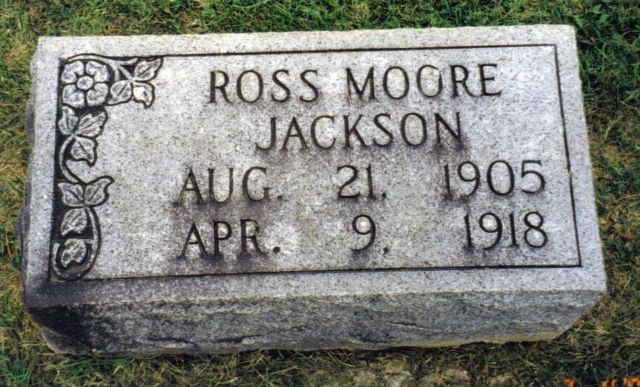 JACKSON, Ross Moore b. 21 August 1905 d. 9 April 1918 son of J. Charles and Linnie Eudora Jackson