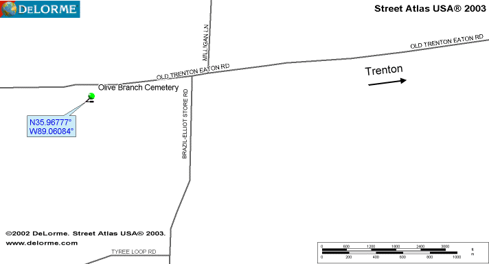 Located on the Old Eaton road about 5 miles from Trenton - Dyersburg Highway # 104