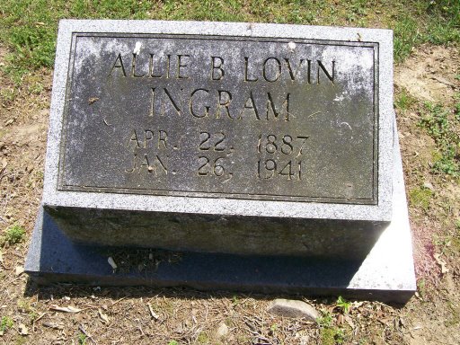 Allie B. Lovin Ingram 4-22-1887 - 1-26-1941 ( triple marker )