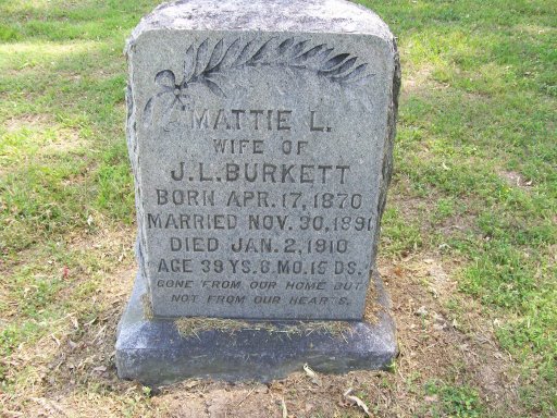 BURKETT, Mattie L. - wife of J. L. 4-17-1870 - 1-2-1910 M. 11-30-1891