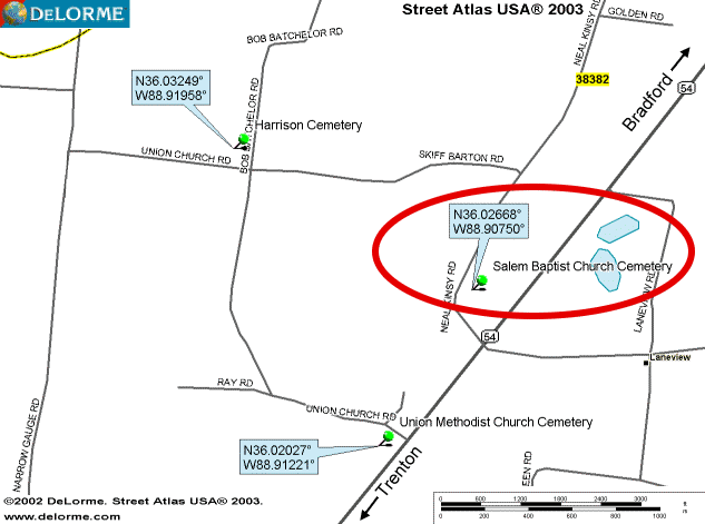 From Trenton on Hwy. 105, go 2.1 miles. Turn left onto Neil Kinsey Rd. Salem