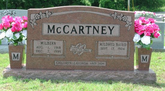 MCCARTNEY, Milbern - Aug. 1, 1918 - Dec. 7, 1995 Mildred Baird - Sept. 17, 1924 - (Children: Lavonda & Don)