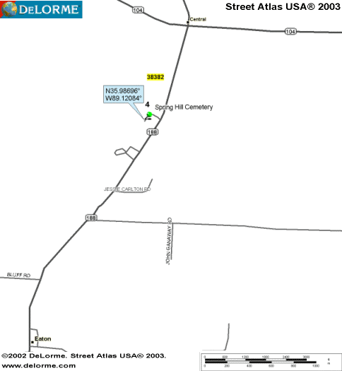 Located on Hwy 188, 12 miles west of Trenton, Gibson Co TN, behind the Spring Hill Baptist Church.