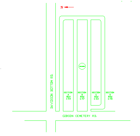 While doing the recording of this cemetery, I tried to think about how it would look on here, and the best way to present the information. So, this is what I came up with, the cemetery has four sections, with four drives dividing them, so I have lettered them A-B-C-D, and will list the names by rows, I think this will make it easier for someone to find a certain headstone that they want to see. See attached plot.