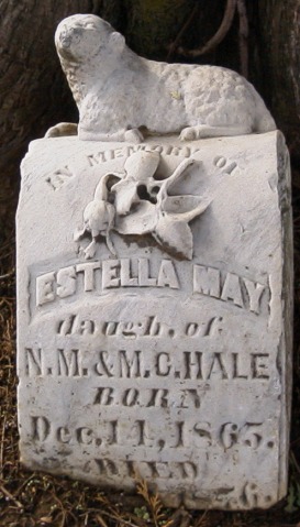 Hale, Estella May Dec 14, 1865 - Sept. 15, 1876 daugh. of N. M. & M. C. Hale