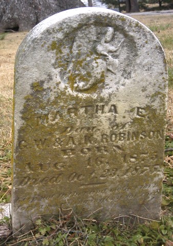 Robinson, Martha E. Aug 16, 1875 - Oct 23, 1875 Dau of G. W. & A. K. Robinson